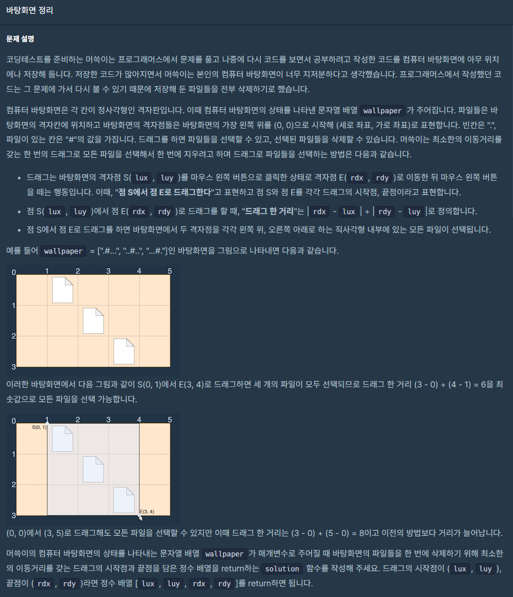 프로그래머스 - 바탕화면 정리 (파이썬3 Python3) 본문